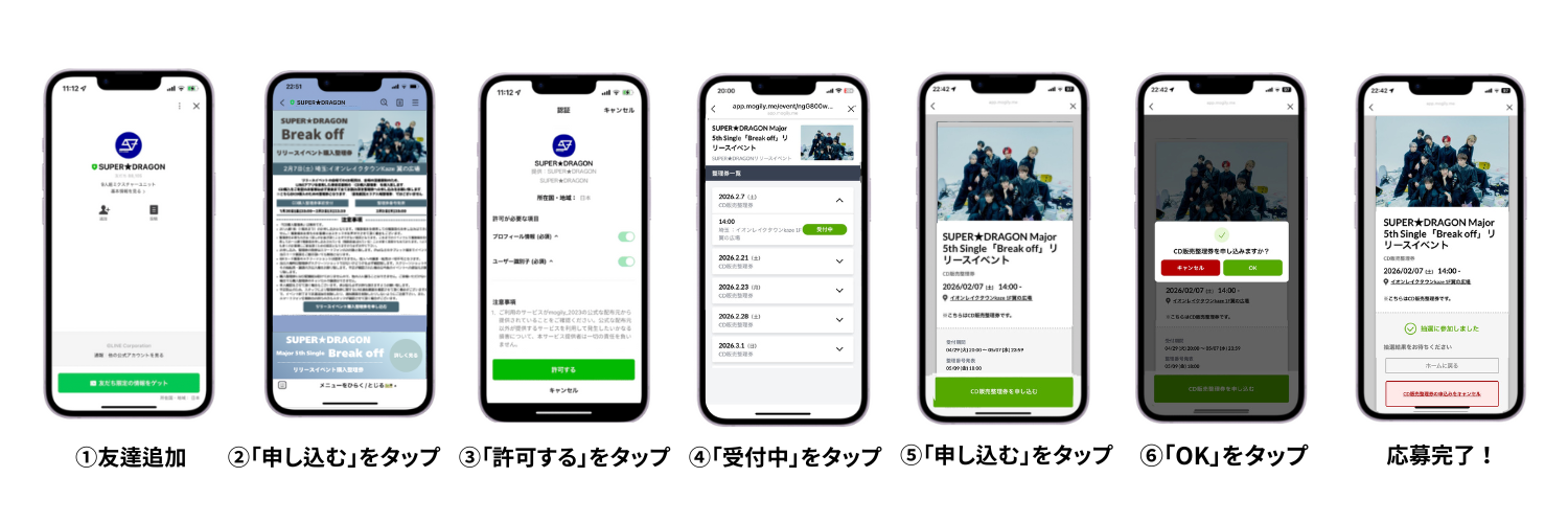 ・お申し込み、整理券の発券はスマートフォンのみ対象と致します。iPadなどのタブレット端末でイベント当日トーク画面をご提示頂いても無効となります。
