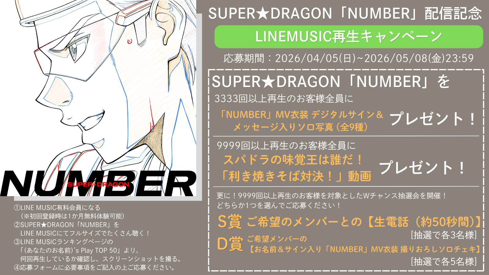 SUPER★DRAGON Digital Single「NUMBER」の配信を記念して、 LINE MUSIC再生キャンペーン開催決定!